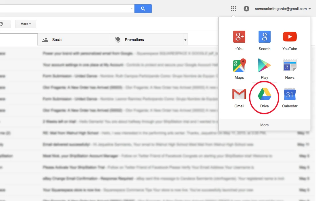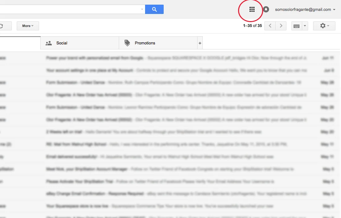Step 1: Click on the Google Apps drop down menu in the upper right.
