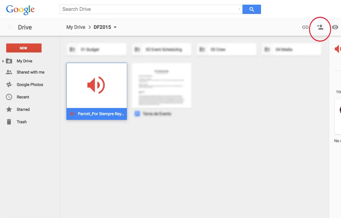 Step 3: Click to select your song file and then click the "Share" button at the top right (a plus sign next to a person).