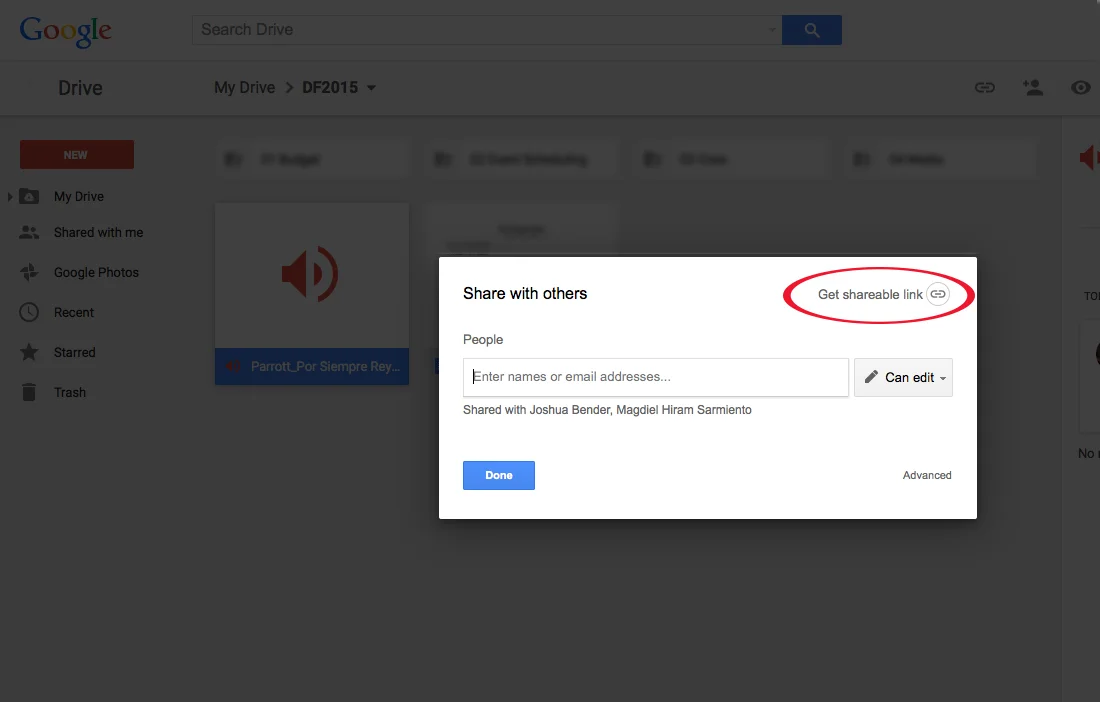 Step 4: Click on the "Get Shareable Link" button in the top right corner.