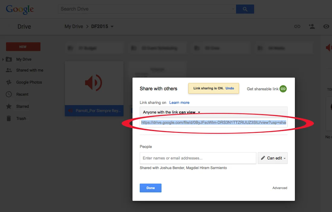 Step 6: Select and copy the entire link in the "Link to File" box and paste it into the Bravetown form.