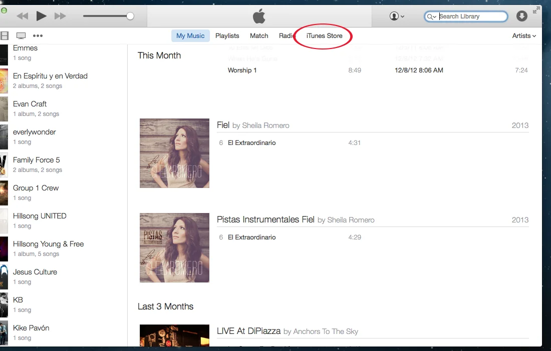 Step 1: Click on the "iTunes Store" link in your iTunes app.