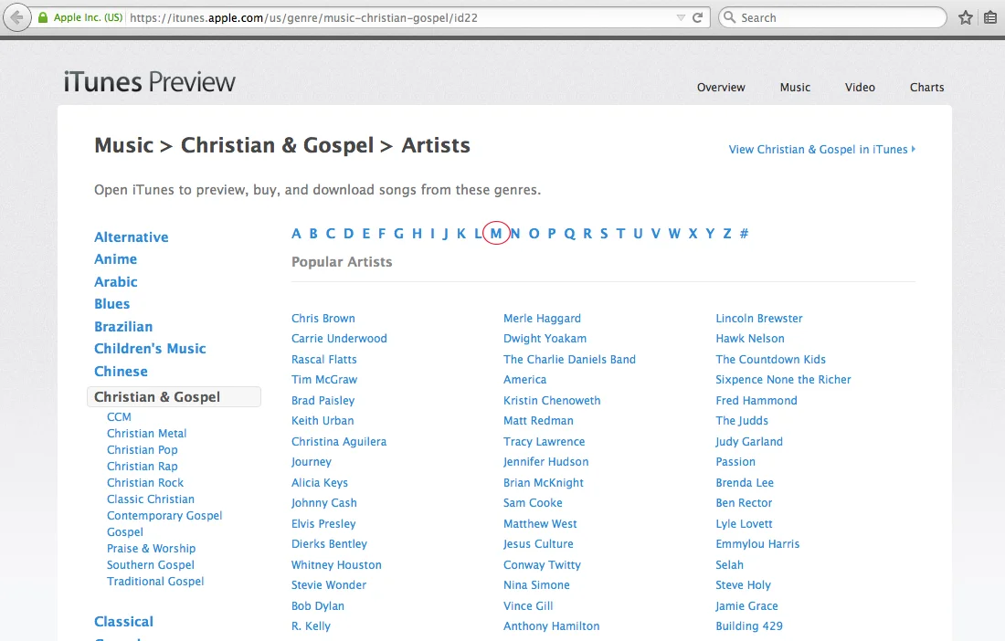 Step 1: Click on the first letter of the artist you sings your song from the selection A-Z# at the top.