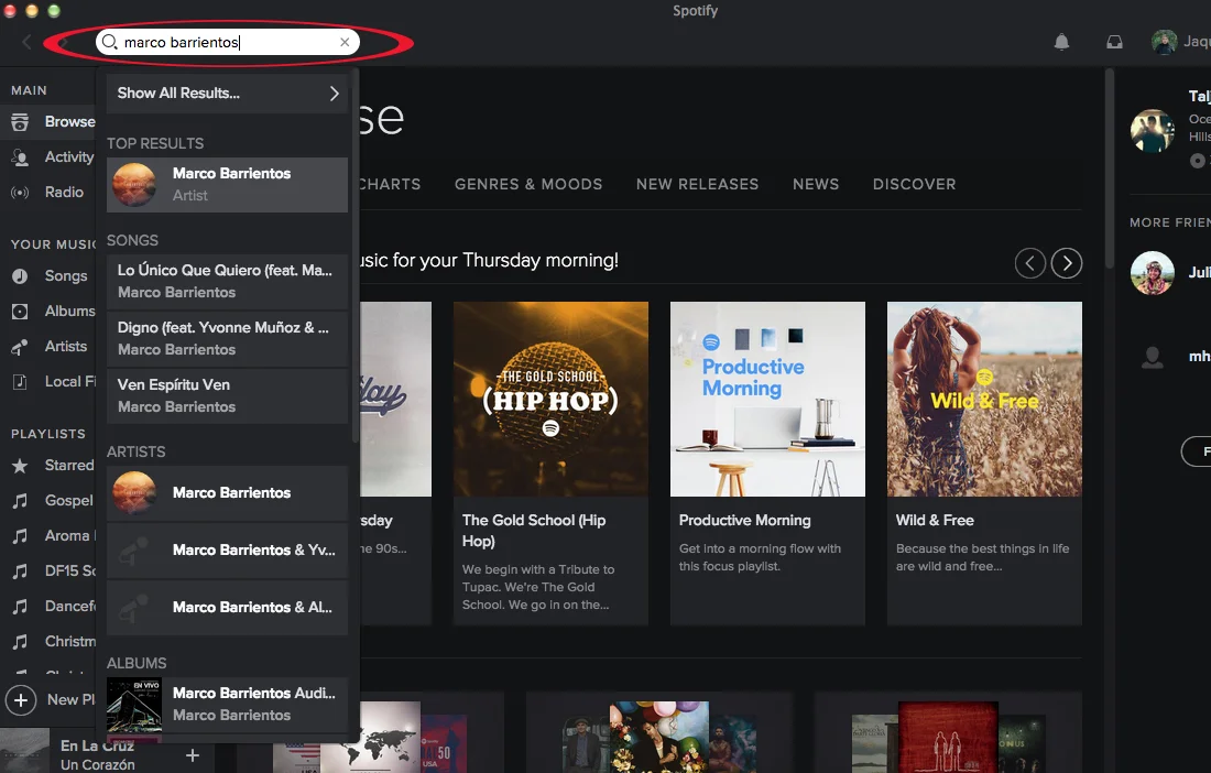 Inicia una sesión en tu cuenta de Spotify o registrare para una cuenta gratuita aquí.