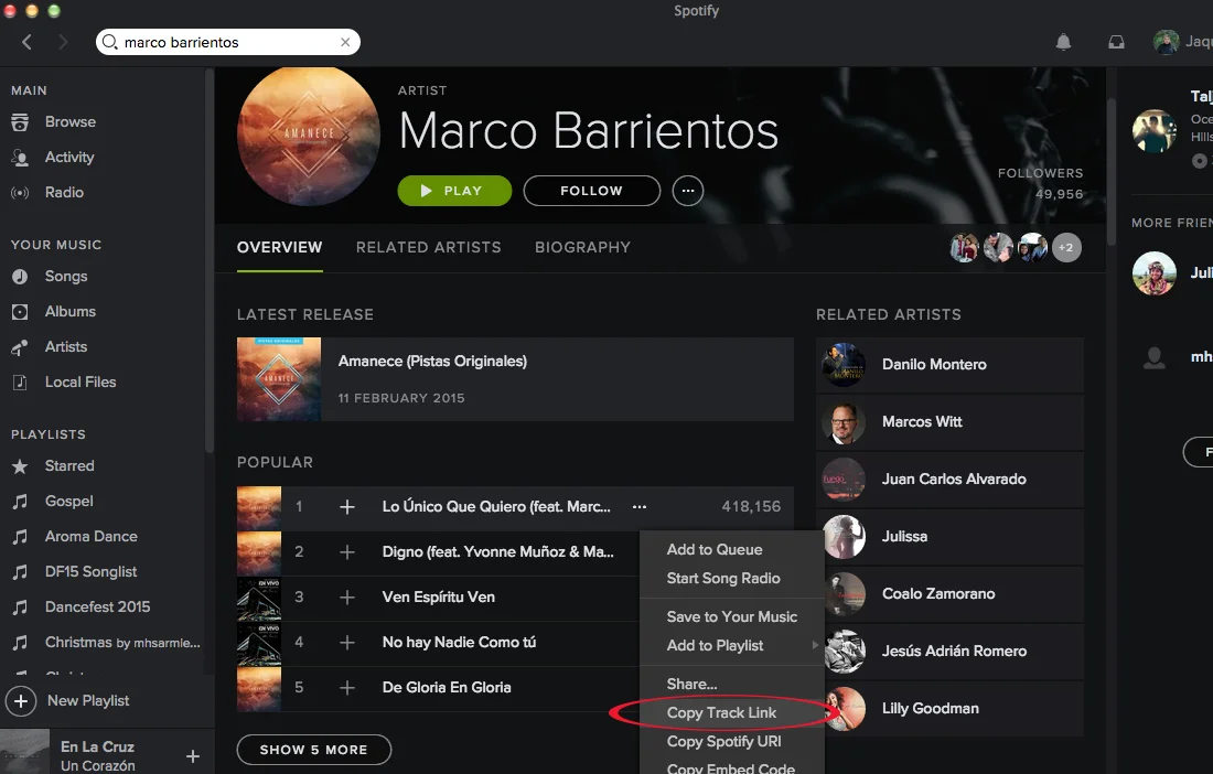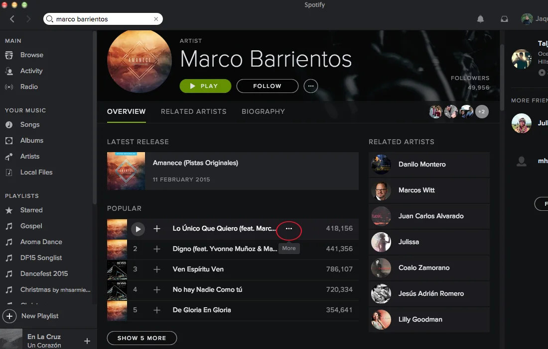 Step 2: Locate and click on the name of the artist.
